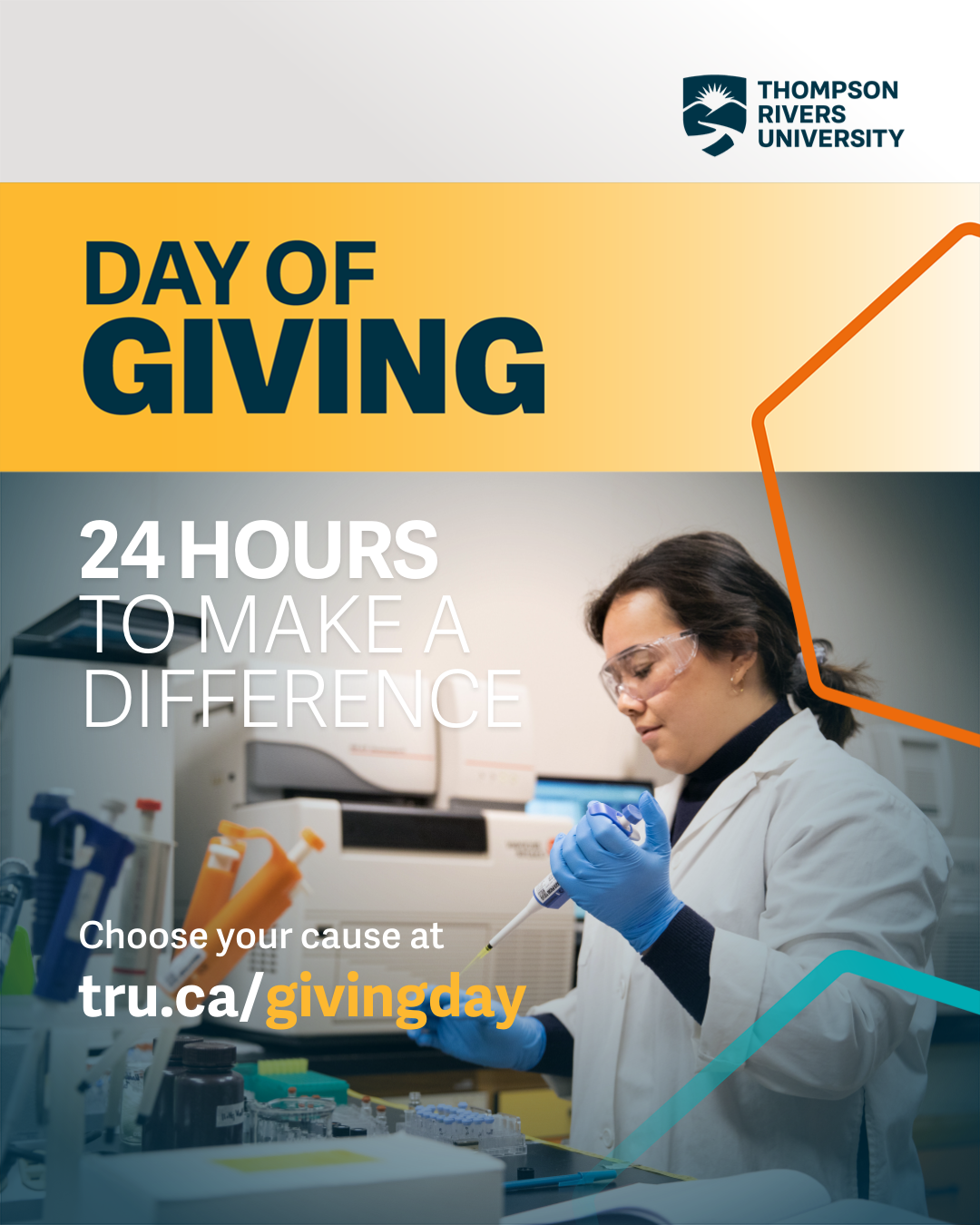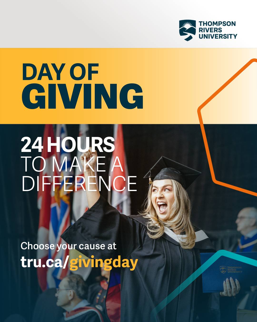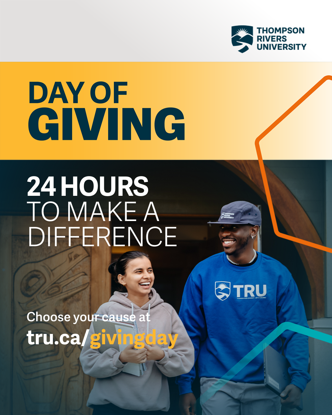 TRU Day of Giving is an exciting 24-hour event where members of the TRU community worldwide are invited to come together in support of students at TRU by donating and spreading the word to increase their impact.
