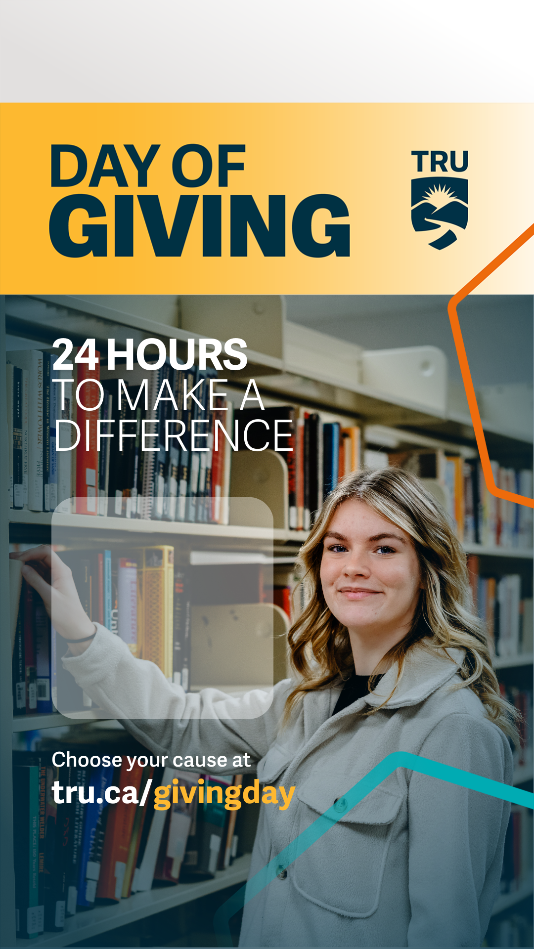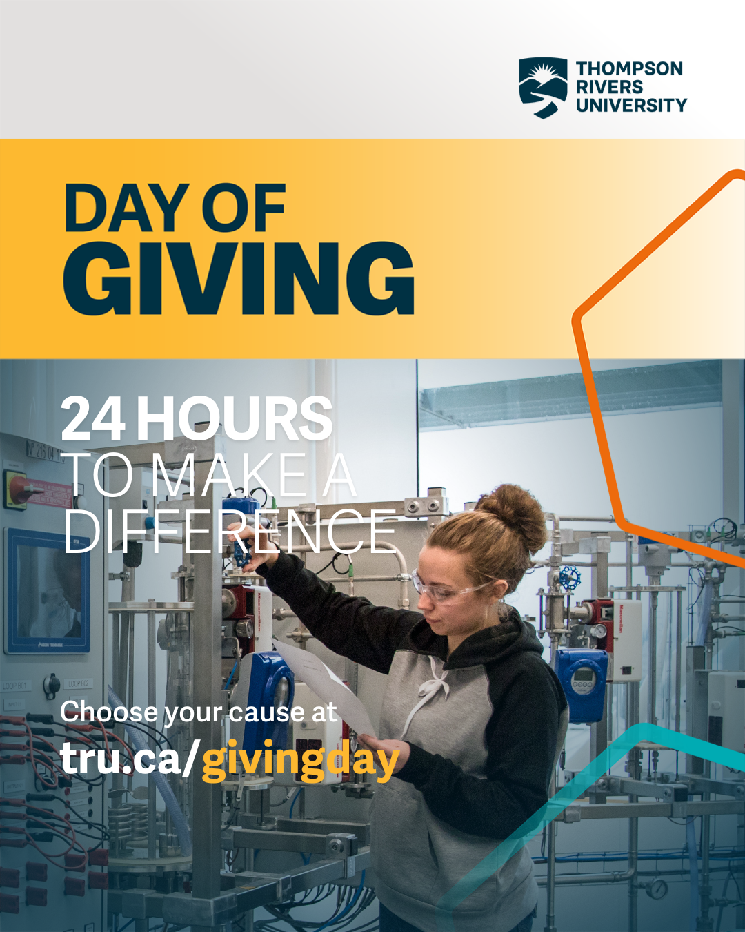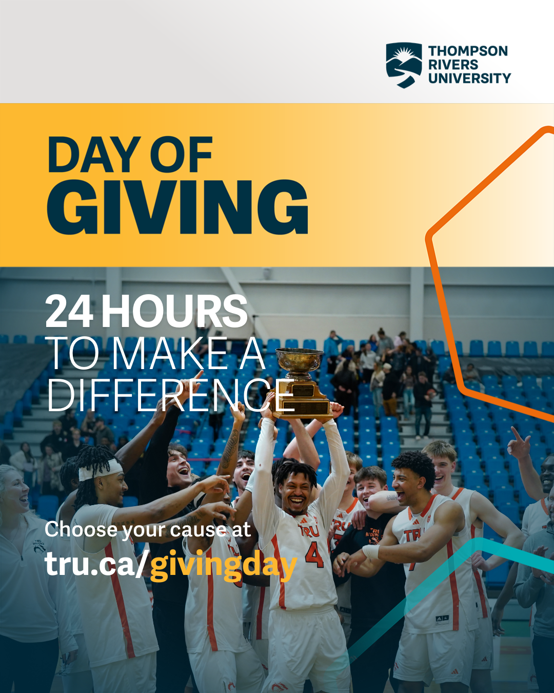 TRU Day of Giving is an exciting 24-hour event where members of the TRU community worldwide are invited to come together in support of students at TRU by donating and spreading the word to increase their impact.